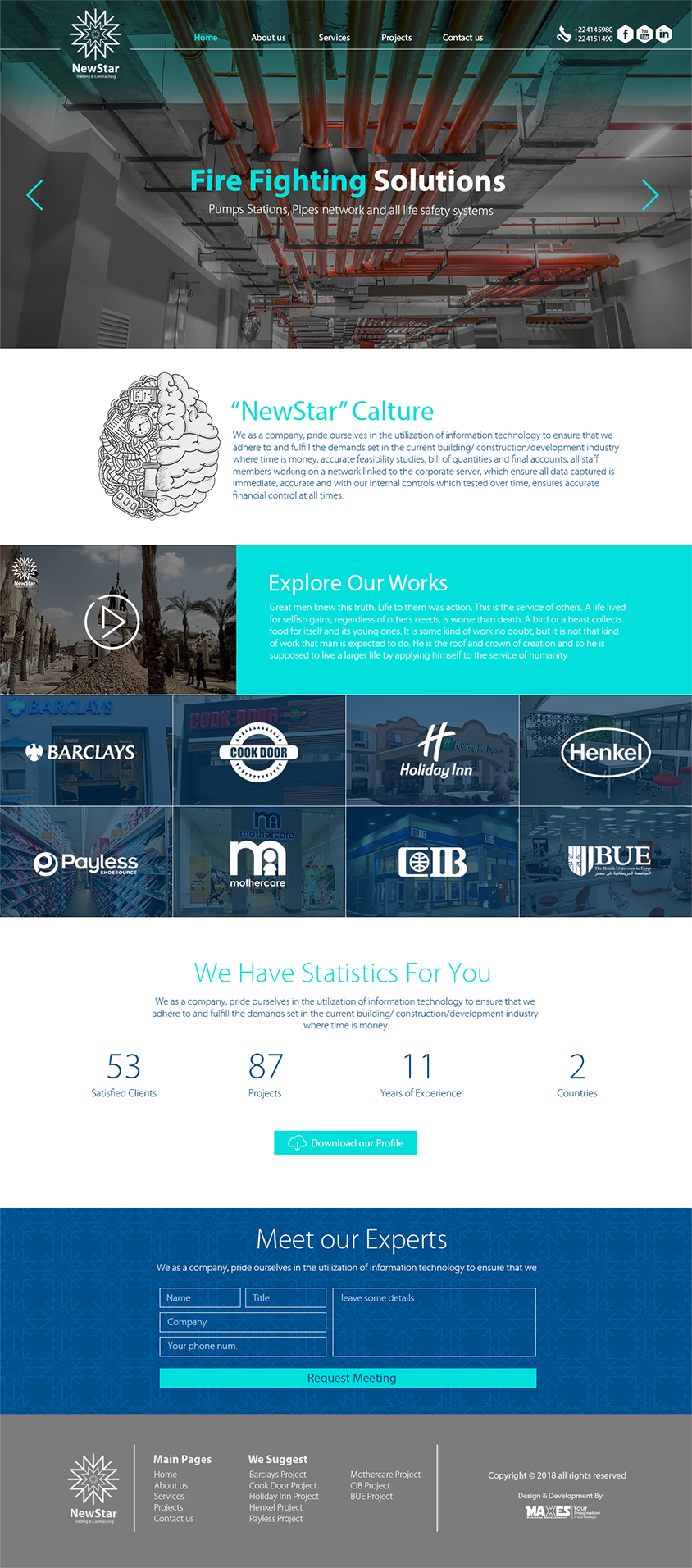 We studied companies competing for New Star and discovered that most of them use almost the same pallet colors between blue and gray to red and gray or orange or gray or red and black and a lot of traditional pallets and this is not a shame, but the entry of a new company in that busy area requires a striking color, and after we chose our colors Carefully, you can distinguish the identity of New Star from all the companies that submit to win a tender for a project .. You can feel the big difference in thought between them and competitors from the company profile to its website, which depends on the history of the company and its customers
